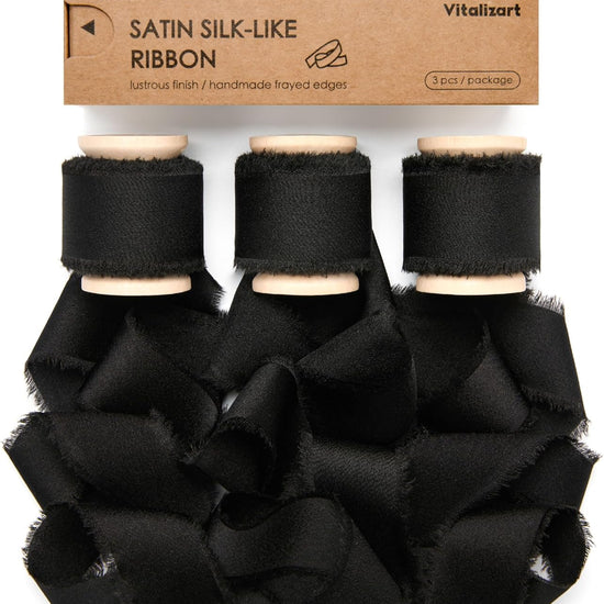 Silk Satin Ribbon With Wooden Spool 1" x 15 Yd (Black)