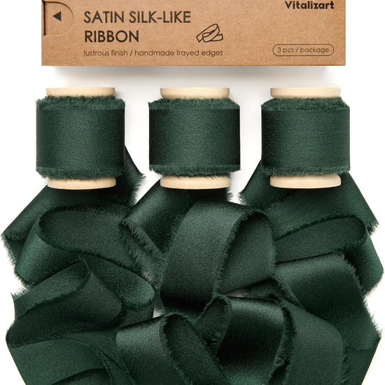 Silk Satin Ribbon With Wooden Spool 1" x 15 Yd (Dark Green)