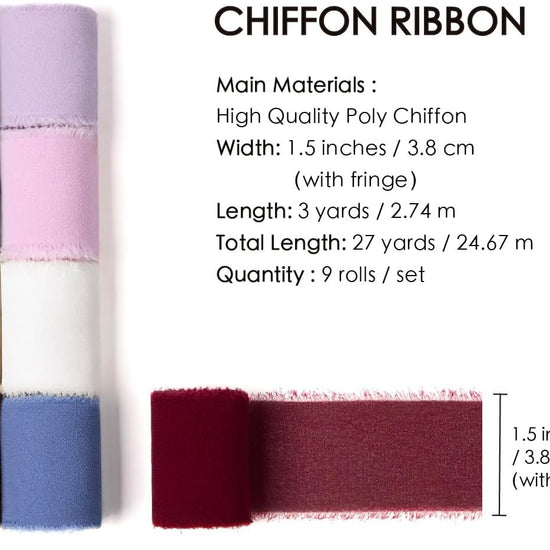 - There are 9 rolls of ribbon and 27 yards in total. Each roll is 1.5 inch x 3 yard.
