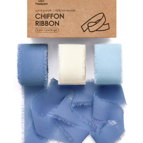 FRINGE CHIFFON SILK RIBBON 1" X 21YD (Dust & baby blue)