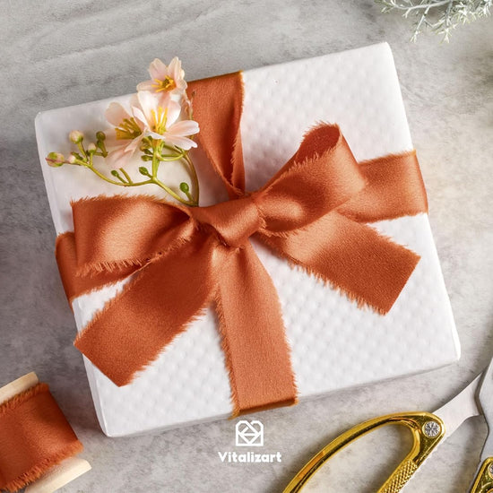 - 【Handmade Decorative Ribbon】Every step of this silk satin ribbon is handmade, including dyeing, tearing in ribbons, rolling up and packaging. It is best suited for party decorations, dress sashes, bouquets, gift wrapping, indoor and outdoor decorations and all kinds of occasions.