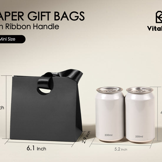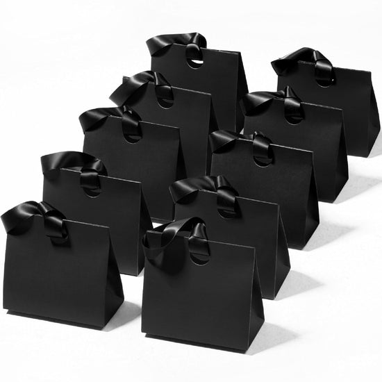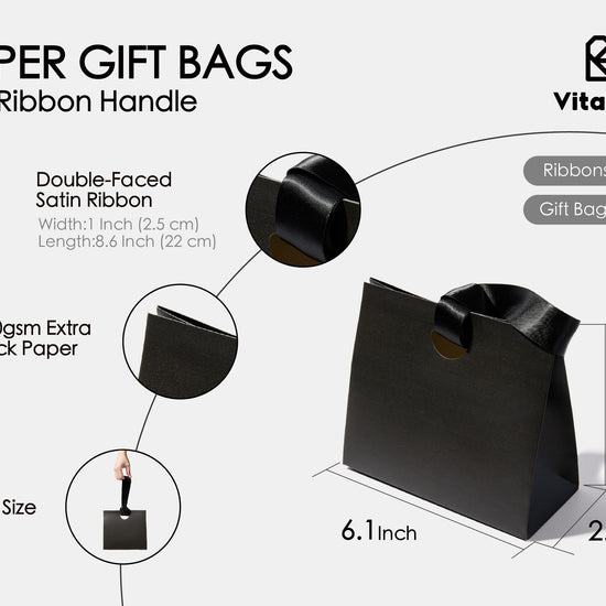 Vitalizart Paper Gift Bags With Ribbon Handles Set of 10 Black Bulk Reusable For Gift Wrap Girls Kids Birthday Bridal Shower Party Favors Goodie Bags Candy Christmas 6.1"x2.95"x5.71" Mini(Black)