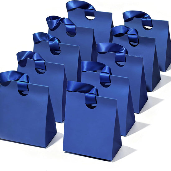 VITALIZART PAPER GIFT BAGS WITH RIBBON HANDLES SET OF 10 RED BULK REUSABLE FOR GIFT WRAP 5.91"X3.54"X7.28" SMALL (BLUE COLOR)