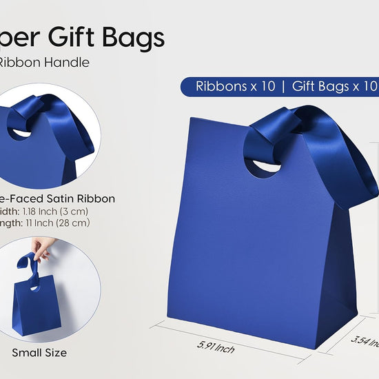 - INSTANTLY Wrap ANY Gift: Each package includes 10 sets of 5.91"x3.54"x7.28" gift bags and satin ribbons, providing everything you need to wrap any gift - big or small. Ideal for both regular and irregularly shaped items.