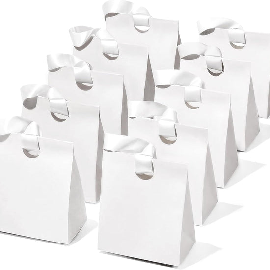 VITALIZART PAPER GIFT BAGS WITH RIBBON HANDLES SET OF 10 RED BULK REUSABLE FOR GIFT WRAP 5.91"X3.54"X7.28" SMALL (WHITE COLOR)