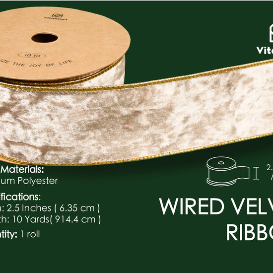 Wired Velvet Metallic Crushed Ribbon 2.5" x 10 Yd (Champagne)